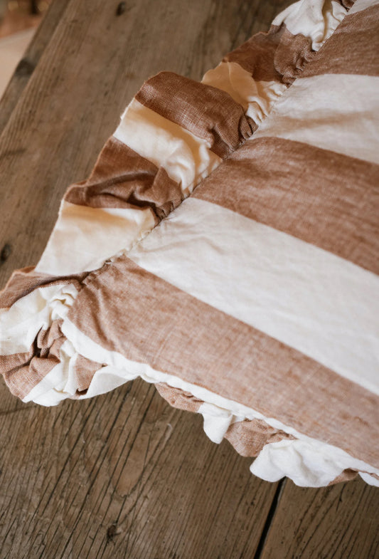 Terracotta- The Brighton Pavilion Bold Stripe Washed Linen Cushion 60x60cm