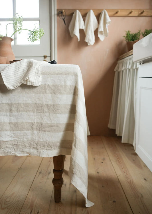 Provence Wide Stripe Tablecloth - Natural Stripe 140 x 240cm